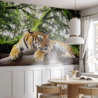 Maßgeschneiderte Fototapete Premium Sand - Hochachtungsvoll - Tiger, Tiere, Raubtier