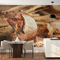 Selbstklebende Fototapete Deluxe Sticker - Appetitanregend, duftend, knackig - Brot, Weizenkorn, Gastronomie - 100x70 cm