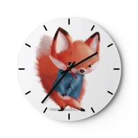 Wanduhr - Glasuhr - Ein süßer Fuchs in einem blauen Schal auf weißem Hintergrund - 30x30cm - Steht mir das gut? - Moderne Wanddekoration für Wohnzimmer, Küche und Schlafzimmer ARTTOR