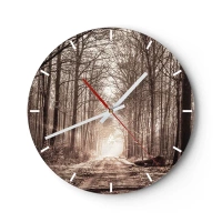 Wanduhr - Glasuhr - Eine Baumallee in einer herbstlichen Landschaft mit Blick in die Tiefe - 30x30cm - Waldkathedrale - Moderne Wanddekoration für Wohnzimmer, Küche und Schlafzimmer ARTTOR