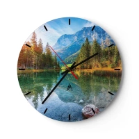Wanduhr - Glasuhr - Berglandschaft mit See und Wald - 30x30cm - Die Sanftheit des Herbstes - Moderne Wanddekoration für Wohnzimmer, Küche und Schlafzimmer ARTTOR