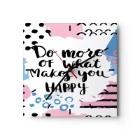 Wanduhr - Glasuhr - Poster mit der Aufschrift „Tu mehr von dem, was dich glücklich macht“ - 30x30cm - Wie man glücklich wird - Moderne Wanddekoration für Wohnzimmer und Schlafzimmer ARTTOR