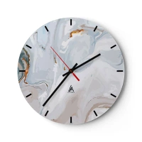 Wanduhr - Glasuhr - Ein abstraktes Muster mit einem Hauch von Blau und Braun auf hellem Hintergrund. - 30x30cm - Blau schlängelt sich unter dem Weiß - Moderne Wanddekoration für Wohnzimmer, Küche und Schlafzimmer ARTTOR