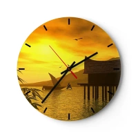 Wanduhr - Glasuhr - Sonnenuntergang über dem See mit einem Haus auf Stelzen - 30x30cm - Der ersehnte Frieden - Moderne Wanddekoration für Wohnzimmer, Küche und Schlafzimmer ARTTOR
