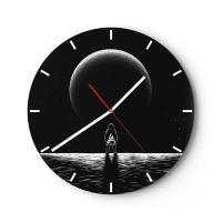 Wanduhr - Glasuhr - Silhouette eines Astronauten vor einem großen Planeten im Weltraum - 30x30cm - Angesicht zu Angesicht - Moderne Wanddekoration für Wohnzimmer, Küche und Schlafzimmer ARTTOR