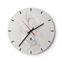 Wanduhr - Glasuhr - Eine minimalistische Grafik zweier ineinander verschlungener Gesichter im Strichzeichnungsstil. - 30x30cm - Verstrickt in eine Umarmung - Moderne Wanddekoration für Wohnzimmer, Küche und Schlafzimmer ARTTOR