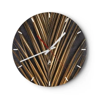 Wanduhr - Glasuhr - Goldene Palmblätter auf dunklem Hintergrund - 30x30cm - Das Gold der Tropen - Moderne Wanddekoration für Wohnzimmer, Küche und Schlafzimmer ARTTOR