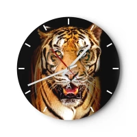 Wanduhr - Glasuhr - Porträt eines wilden Tigers mit intensivem Blick - 30x30cm - Wild im Herzen - Moderne Wanddekoration für Wohnzimmer, Küche und Schlafzimmer ARTTOR
