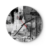 Wanduhr - Glasuhr - Schwarz-Weiß-Abstraktion mit Pinselstrich-Textur - 30x30cm - Wunderschönes Grau - Moderne Wanddekoration für Wohnzimmer, Küche und Schlafzimmer ARTTOR