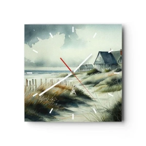 Wanduhr - Glasuhr - Ein Haus am Meer, umgeben von Gras und mit Blick auf das Meer - 30x30cm - Abseits vom Trubel - Moderne Wanddekoration für Wohnzimmer und Schlafzimmer ARTTOR