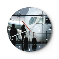 Wanduhr - Glasuhr - Flughafen mit Blick auf Flugzeug und Passagiere - 30x30cm - Vis a vis am Flughafen - Moderne Wanddekoration für Wohnzimmer, Küche und Schlafzimmer ARTTOR