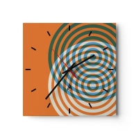 Wanduhr - Glasuhr - Konzentrische Kreise auf orangefarbenem Hintergrund - 30x30cm - Abstrakte kreisförmige Variation - Moderne Wanddekoration für Wohnzimmer und Schlafzimmer ARTTOR