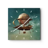 Wanduhr - Glasuhr - Ein fantastisches Luftschiff vor dem grünlichen Himmel - 30x30cm - Jules Verne sagt Hallo - Moderne Wanddekoration für Wohnzimmer und Schlafzimmer ARTTOR