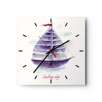 Wanduhr - Glasuhr - Ein Aquarell eines Segelboots auf dem Wasser mit einer zarten Inschrift - 30x30cm - Volle Segel und ruhiges Wasser - Moderne Wanddekoration für Wohnzimmer und Schlafzimmer ARTTOR