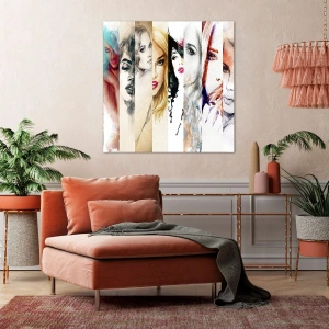 • Dieses Gemälde zeigt eine Reihe von Frauenporträts, die in verschiedenen künstlerischen Stilen ausgeführt wurden. Die Vielfalt der Farben und Techniken macht es zu einer einzigartigen Ergänzung für jedes Interieur.