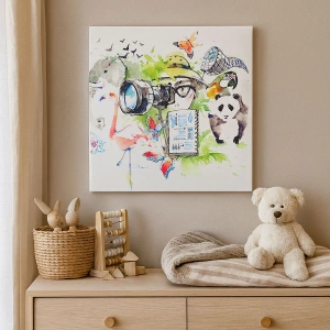 Bild auf Leinwand - Leinwandbild - Bunte Grafiken mit Natur- und Safari-Themen - 70x50cm - In der Linse eines Reisenden - Moderne Wanddekoration für Wohnzimmer und Schlafzimmer ARTTOR