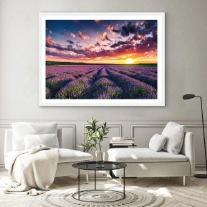 Poster in einem weißen Rahmen - Lavendel Welt - 91x61 cm