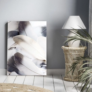 Bild auf Leinwand - Leinwandbild - Nahaufnahme zarter Federn in Weiß- und Grautönen - 70x50cm - Fast engelhaft - Moderne Wanddekoration für Wohnzimmer und Schlafzimmer ARTTOR