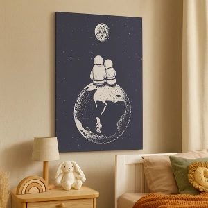 Die Leinwand wird über den Rahmen gespannt. Die Seiten und Kanten werden gedruckt, um das Bild fortzusetzen. Das Bild ist fertig zum Aufhängen an der Wand. Jedes Produkt hat einen am Rahmen befestigten Anhänger und ein Montageset (Schraube + Stift).