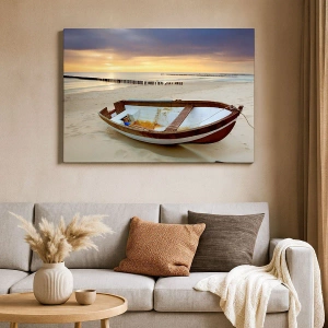 Die Leinwand wird über den Rahmen gespannt. Die Seiten und Kanten werden gedruckt, um das Bild fortzusetzen. Das Bild ist fertig zum Aufhängen an der Wand. Jedes Produkt hat einen am Rahmen befestigten Anhänger und ein Montageset (Schraube + Stift).