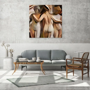 Glasbild - Bild auf glas - Abstrakte Komposition mit drei Figuren - 50x70cm - Drei Grazien 2.0 - Moderne Wanddekoration für Wohnzimmer und Schlafzimmer ARTTOR
