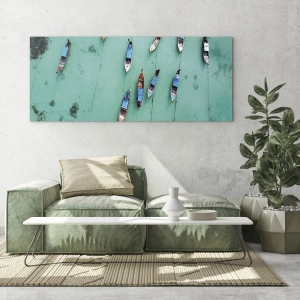 Glasbild - Bild auf glas - Boote auf türkisfarbenem Wasser von oben gesehen - 70x50cm - In freudiger Erwartung - Moderne Wanddekoration für Wohnzimmer und Schlafzimmer ARTTOR