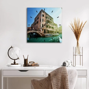 Wanduhr - Glasuhr - Venedig mit einer Brücke und einem Wasserkanal - 30x30cm - Venedig - Amore Mio - Moderne Wanddekoration für Wohnzimmer, Küche und Schlafzimmer ARTTOR