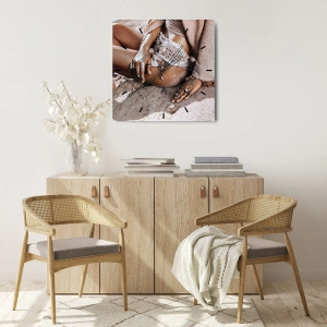 Wanduhr - Glasuhr - Boho-feminines Styling mit Schmuck und Sand auf der Haut - 30x30cm - Von den Wellen geworfen? - Moderne Wanddekoration für Wohnzimmer, Küche und Schlafzimmer ARTTOR
