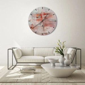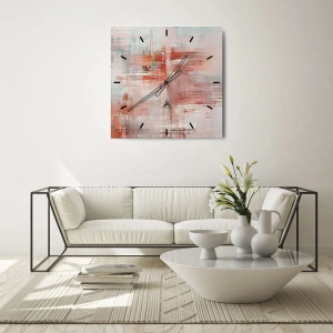 Wanduhr - Glasuhr - Eine abstrakte Komposition aus Strichen in Rosa- und Weißtönen. - 30x30cm - Dunstig. Aber rosa - Moderne Wanddekoration für Wohnzimmer, Küche und Schlafzimmer ARTTOR