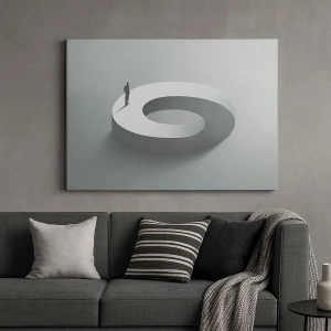 Bild auf Leinwand - Leinwandbild - Ein Mann auf einer grauen, abstrakten Struktur - 70x50cm - Und wie soll man davon klug werden - Moderne Wanddekoration für Wohnzimmer und Schlafzimmer ARTTOR