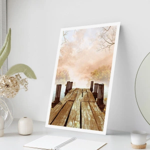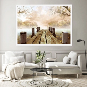 • Landschaft, See, Holzbrücke, Landschaften, Brücken, Für das Büro, für das Arbeitszimmer, für das Esszimmer, für das Badezimmer, für den Flur, für das Wohnzimmer, für das Schlafzimmer, Braun, Quadrat