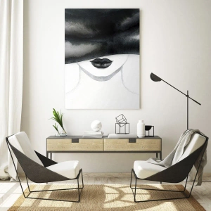 Glasbild - Bild auf glas - Geheimnisvolles Gesicht mit verdeckten Augen in Schwarz-Weiß-Aquarell - 70x50cm - Ein sinnliches Geheimnis - Moderne Wanddekoration für Wohnzimmer und Schlafzimmer ARTTOR