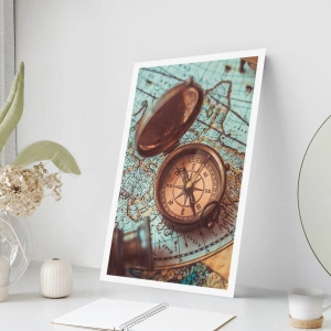 Poster - Komposition mit Kompass, Schlüsseln und einer alten Karte im Retro-Stil - 100x70cm - Für den Abenteurer - Moderne Wanddekoration für Wohnzimmer und Schlafzimmer ARTTOR