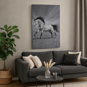 Die Leinwand wird über den Rahmen gespannt. Die Seiten und Kanten werden gedruckt, um das Bild fortzusetzen. Das Bild ist fertig zum Aufhängen an der Wand. Jedes Produkt hat einen am Rahmen befestigten Anhänger und ein Montageset (Schraube + Stift).