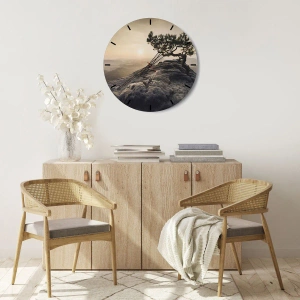 Wanduhr - Glasuhr - Ein einsamer Baum auf einem felsigen Gipfel im Sonnenlicht - 30x30cm - Das Leben gewinnt immer - Moderne Wanddekoration für Wohnzimmer und Schlafzimmer ARTTOR