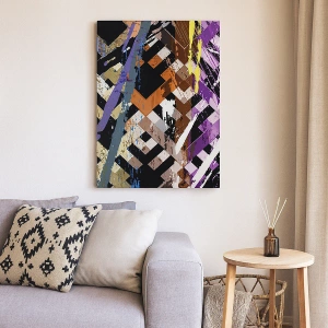 Die Leinwand wird über den Rahmen gespannt. Die Seiten und Kanten werden gedruckt, um das Bild fortzusetzen. Das Bild ist fertig zum Aufhängen an der Wand. Jedes Produkt hat einen am Rahmen befestigten Anhänger und ein Montageset (Schraube + Stift).