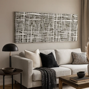 Bild auf Leinwand - Leinwandbild - Ein geometrisches Muster, das einem Gitter auf hellem Hintergrund ähnelt - 50x70cm - Gewebte Komposition - Moderne Wanddekoration für Wohnzimmer und Schlafzimmer ARTTOR