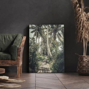 Die Leinwand wird über den Rahmen gespannt. Die Seiten und Kanten werden gedruckt, um das Bild fortzusetzen. Das Bild ist fertig zum Aufhängen an der Wand. Jedes Produkt hat einen am Rahmen befestigten Anhänger und ein Montageset (Schraube + Stift).