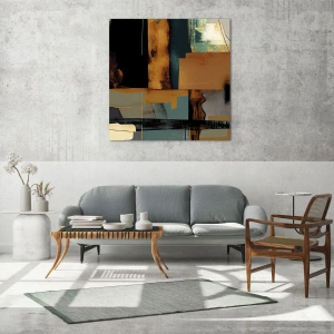 • Abstrakt, Modern, Kunst, Abstrakte Kunst, Für das Büro, für das Arbeitszimmer, für das Esszimmer, für den Flur, für das Wohnzimmer, für das Schlafzimmer, Braun, Schwarz, Blau, Orange, Grau, Gold,, Panorama