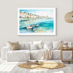 Poster in einem weißen Rahmen - Landschaft in Azurblau - 40x30 cm