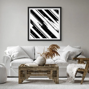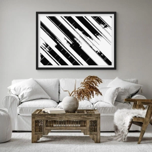 Poster in einem schwarzem Rahmen - Schwarz-weiße Linien und geometrische Muster im modernen Stil - 70x50cm - Eine intensive und dynamische Komposition - Moderne Wanddekoration für Wohnzimmer und Schlafzimmer ARTTOR