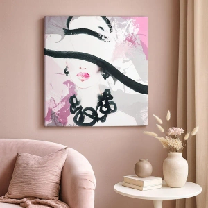 Bild auf Leinwand - Leinwandbild - Bildnis einer Dame in Schwarz und Pink - 30x30 cm