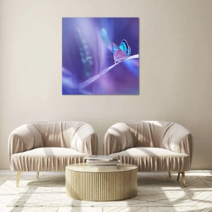 • Ein faszinierendes Gemälde, das einen zarten Schmetterling vor einem Hintergrund aus violettem Licht darstellt, das Ihrem Interieur Eleganz und Harmonie verleiht.