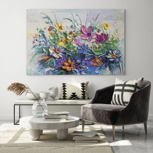 Glasbild - Bild auf glas - Ein farbenfrohes Blumenarrangement im malerischen Stil - 50x70cm - Überhaupt kein Stillleben - Moderne Wanddekoration für Wohnzimmer und Schlafzimmer ARTTOR