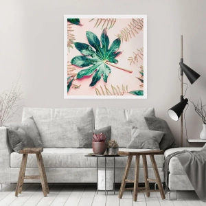 • Tropische Pflanze, Palmblätter, Farnblatt, Botanik, Natur, Für das Büro, für das Arbeitszimmer, für das Esszimmer, für das Badezimmer, für den Flur, für das Wohnzimmer, für das Schlafzimmer, Rosa, Grün, Horizontal