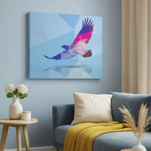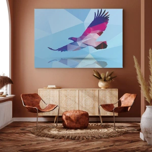 Bild auf Leinwand - Leinwandbild - Geometrische Silhouette eines Adlers im Flug auf blauem Hintergrund - 50x70cm - Adler in lila Kristall - Moderne Wanddekoration für Wohnzimmer und Schlafzimmer ARTTOR