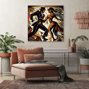 Bild auf Leinwand - Leinwandbild - Ein dynamisches Paar tanzt in abstrakter Form. - 50x70cm - Tanz der Passion und Leidenschaft - Moderne Wanddekoration für Wohnzimmer und Schlafzimmer ARTTOR