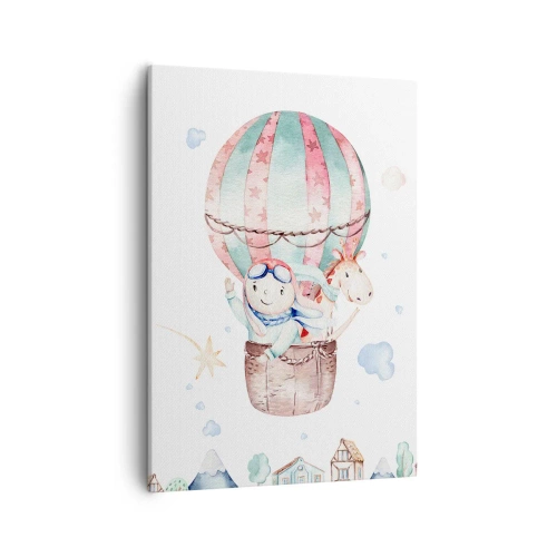 Die Leinwand wird über den Rahmen gespannt. Die Seiten und Kanten werden gedruckt, um das Bild fortzusetzen. Das Bild ist fertig zum Aufhängen an der Wand. Jedes Produkt hat einen am Rahmen befestigten Anhänger und ein Montageset (Schraube + Stift).