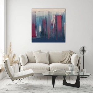 Glasbild - Bild auf glas - Vertikale Komposition in Blau und Rot - 30x30 cm