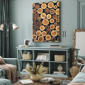 Wie alt sehe ich aus? ist ein einzigartiger Leinwanddruck, der ein Muster aus Holzstammquerschnitten zeigt. Die warmen Farbtöne des Naturholzes und die Vielfalt der Maserungen ergeben eine harmonische und inspirierende Komposition. Die einzigartige Holzstruktur verleiht dem Bild Authentizität und die geometrische Anordnung einen modernen Charakter.